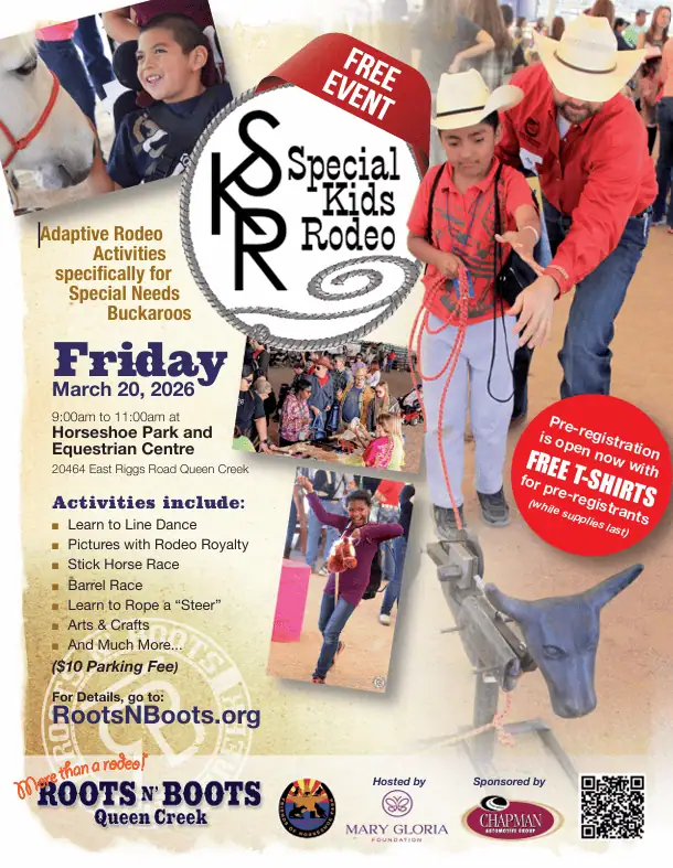 Roots N’ Boots Queen Creek is excited to again host a Special Kids Rodeo (SKR) featuring fun cowboy activities just for special participants!